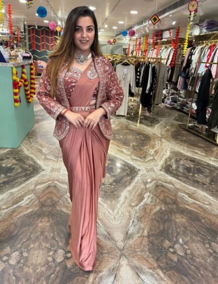 New Super Trending Embroidery Sequence work ready to wear saree with full koti